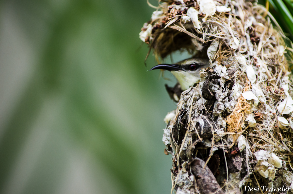 For clicking pictures it was a good experience and I clicked some Scaly Breasted Munia (Lonchura punctulata) and a few other birds, the star of the trip was a mother sunbird (Nectarinia asiatica) sitting in her nest looking at me suspiciously. ( I wanted to publish this blog as I did not want this picture to go out while the chicks were in the nest, I am pretty sure they have left the nest by now)