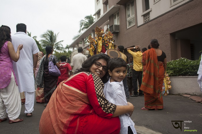 Cannot forget these two moments – when for the first time he tried to play the dhak when he was around 2.5 years. I guess I was more thrilled than him. It’s the same year he realized what a visarjan is and that moment when the mother and son bid goodbye to goddess mother wishing her to come soon next year.