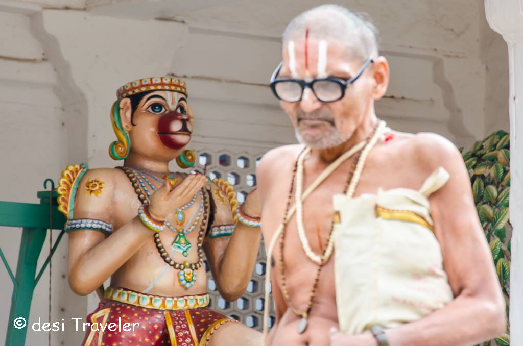 As it was a day of major celebrations at the temple, all the priests were busy in various preparations for the special pooja. As I was watching all the activities at the temple I clicked a few pictures in the temple. One of them is the main header picture of desi Traveler Blog. I initially thought of giving some nice caption to the picture but then decide to stick to the simple: Hanuman and Priest as it kind of captures everything in the picture. If you are a history buff, do visit the main post about Sitram Bagh Temple and see more pictures and story about the same.