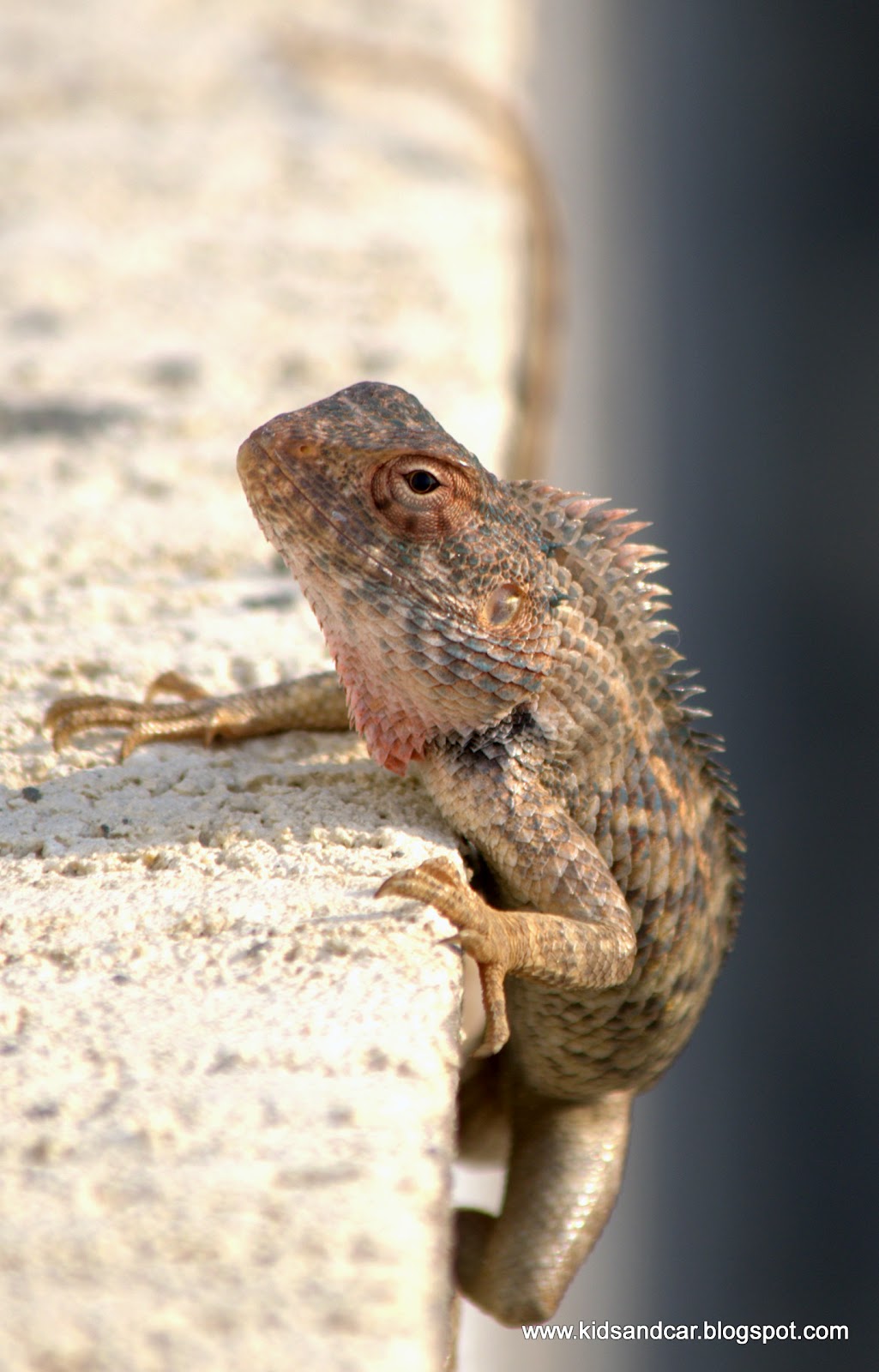 But the hummingbird had other plans and had decided to take off the moment it saw me equipped with my gear. I wanted to head back to my own nest perched on the 16th floor, but as I was turning around I spotted a Chameleon also called Oriental garden lizard (Calotes versicolor), trying to climb out of the shade into the warmth of sunlight.