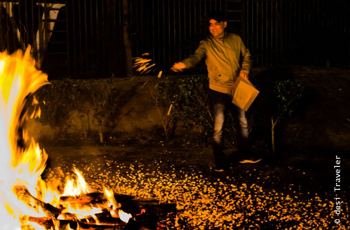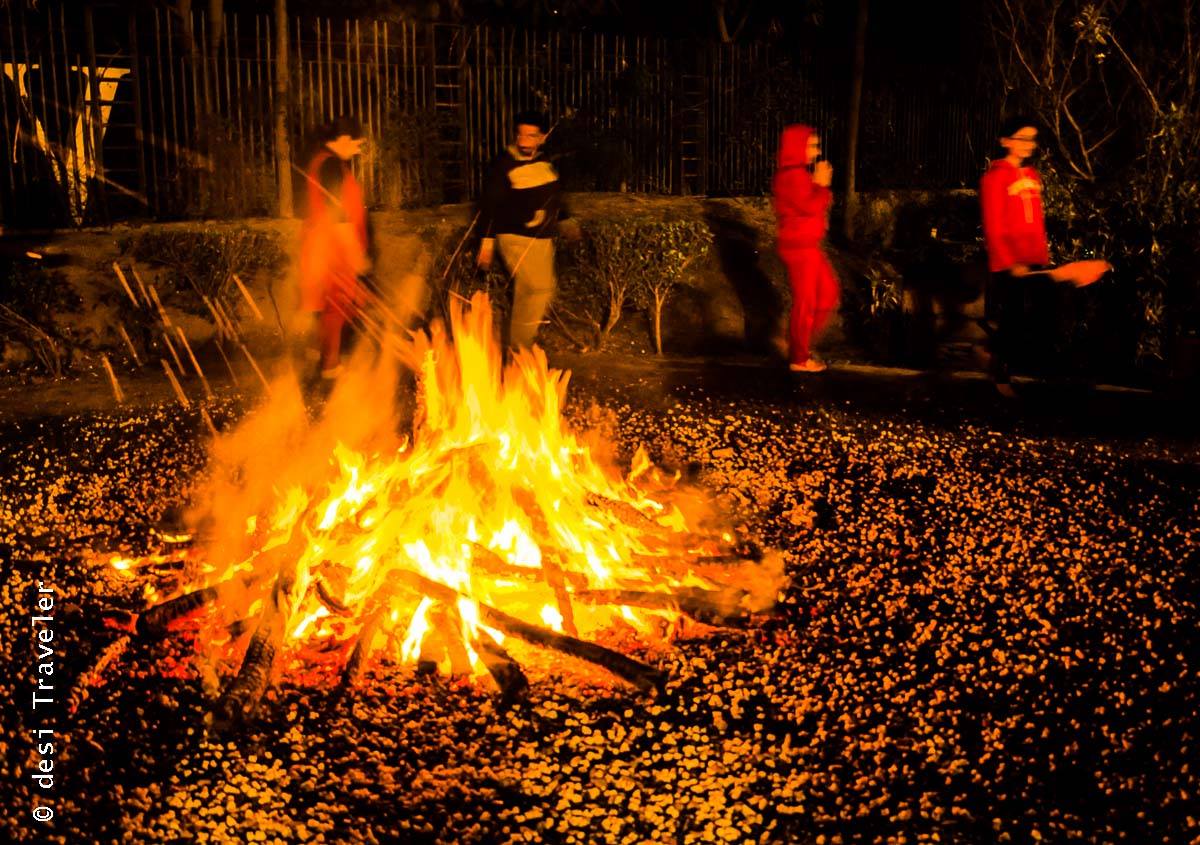 Some people may fly kites on Makar Sakranti, others make rangolis and while others like our brothers and sisters in Punjab light bonfires and dance around it but essentially they are all harvest festivals and in my opinion predates any kind of religion and are more of a celebration of transition of the human race from hunter-gatherer to farmer. Today it may sound like a mundane development but from a historical and anthropological development point, the transition of humans from hunter-gatherer to farmers was a giant leap. None of the ancient civilizations like Indus Valley Civilization, Nile Valley, Mesopotamia, Petra or Machu Pichu would have occurred if humans were still hunter-gatherers. Anyways let me not bore you with my global G. and share with you some of the pictures that I clicked this Lohri singing and dancing around bonfire thanking the heavens and mother nature for all the bounties and good fortune and of course praying for world peace 🙂