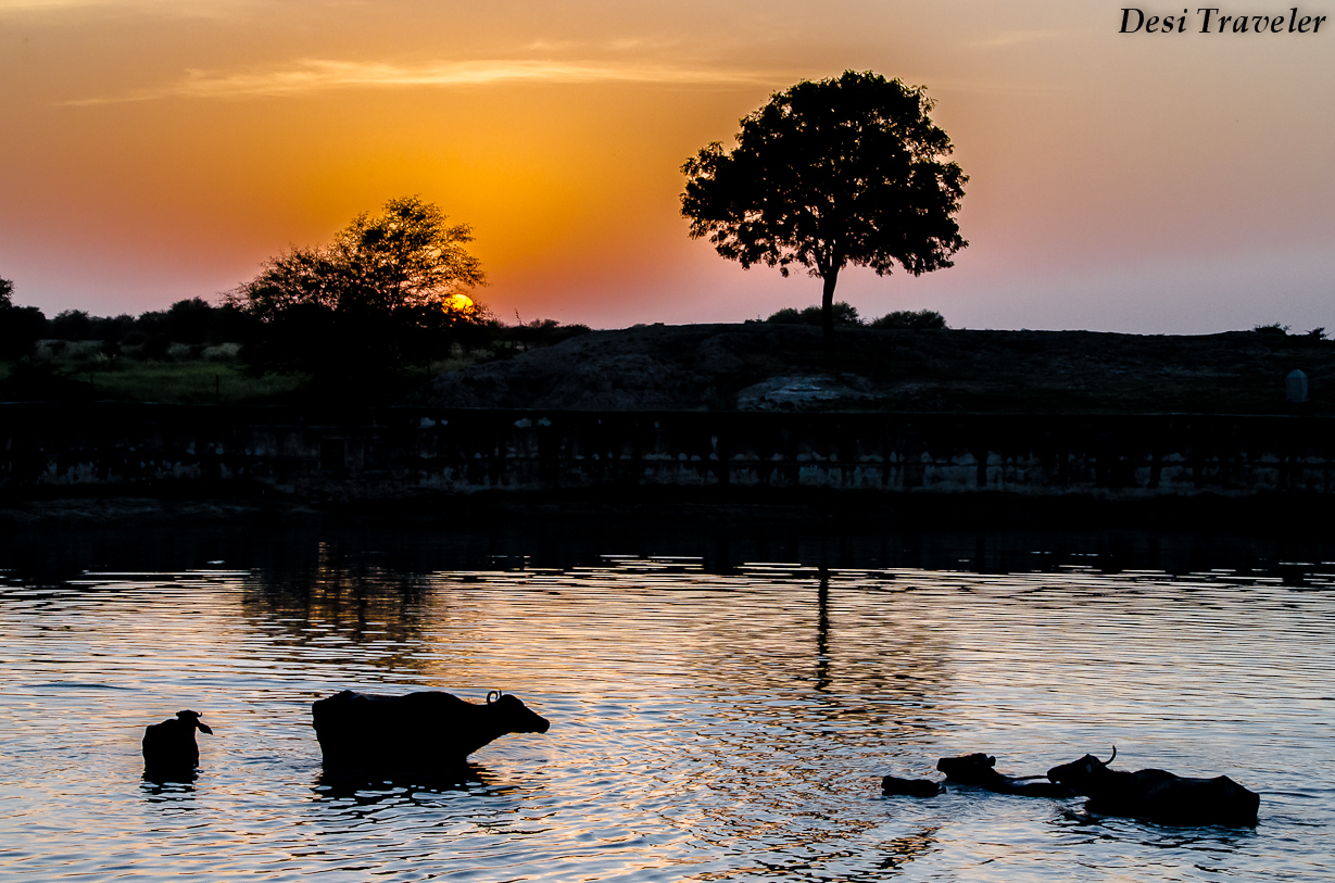 Soon it was time to return to the guest house where Vandana and Sharad our wonderful hosts who run the Tal Chhapar forest guest house had ordered yummy Kachoris for us, that you will not find anywhere else (another reason to return to Tal Chhapar). While returning I saw some buffaloes in the village pond and captured this sunset. I hope you have liked this post on reptiles of Rajasthan, and will be on the look out for same besides the birds when you visit Tal Chhapar wildlife sanctuary.