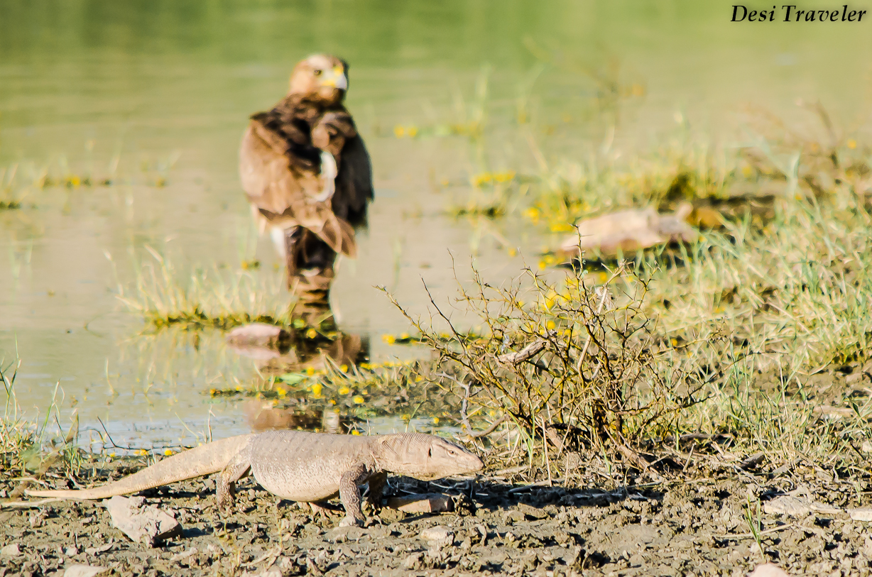 One question that has haunted me since we reached Tal Chhapar was why all these eagles come here when they could be anywhere. Some of the answers to the same were it is safe to be here, it is on the way to Kutch in Gujarat where they are going, but I think the biggest reason the eagles come to Tal Chappar is a large colony of reptiles specifically Spiny Tail Lizards. Though monitor lizards are also found in Tal Chhapar we are talking here about the spiny-tailed lizards that are full of fat and all predators right from our cunning fox to the migrant and resident eagles actively hunt for food. And where there is ample food supply predators are bound to flock.