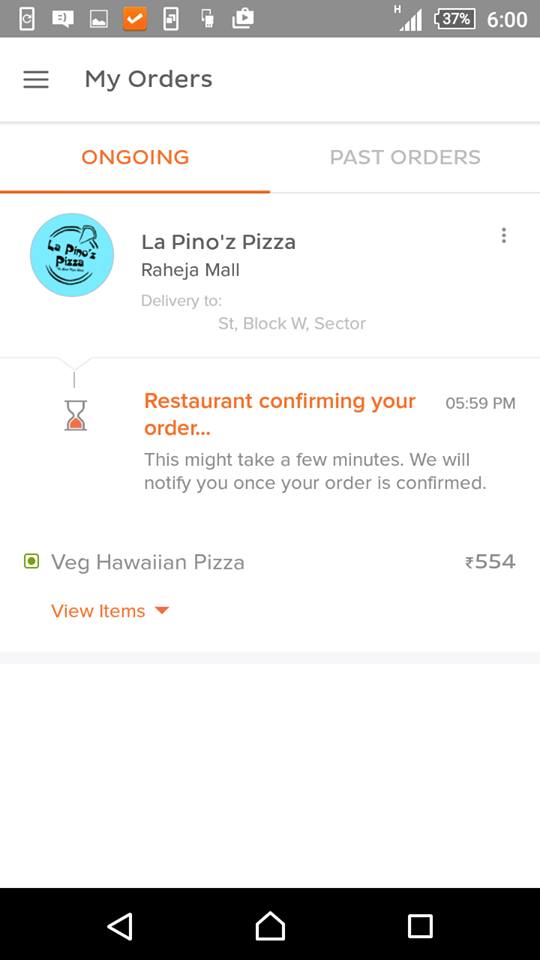 As I surfed through different menus, suddenly life looked rosy once again. After going through tens of restaurants and home chefs serving all kind of Biryanis, Parathas, Pizzas, Sandwiches, home cooked meals etc. I decided to order a Pizza. I had never felt this good pressing on the order and make payment button like I felt at the time of ordering this pizza.