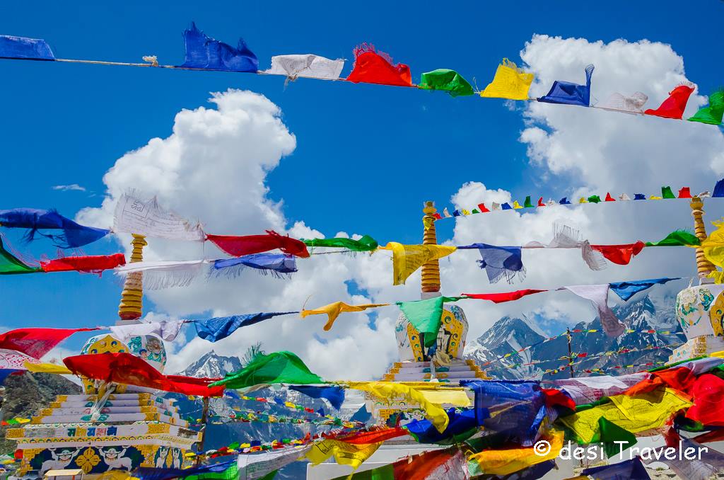 As we approached the Kunzum La, I started clicking pictures, in the bright Sun. The challenge of these high altitude mountains is that there is no tree for shade and you cannot use an umbrella for the wind speed will either tear it off or make it useless. Just look the picture of the flags flying in the air. They were moving at such high-speed that it was tough to freeze their motion. This close-up picture was clicked at F 9 at 1/8000 Th of second, from Nikon D7000 body with a Nikon 18-105 VR lens.