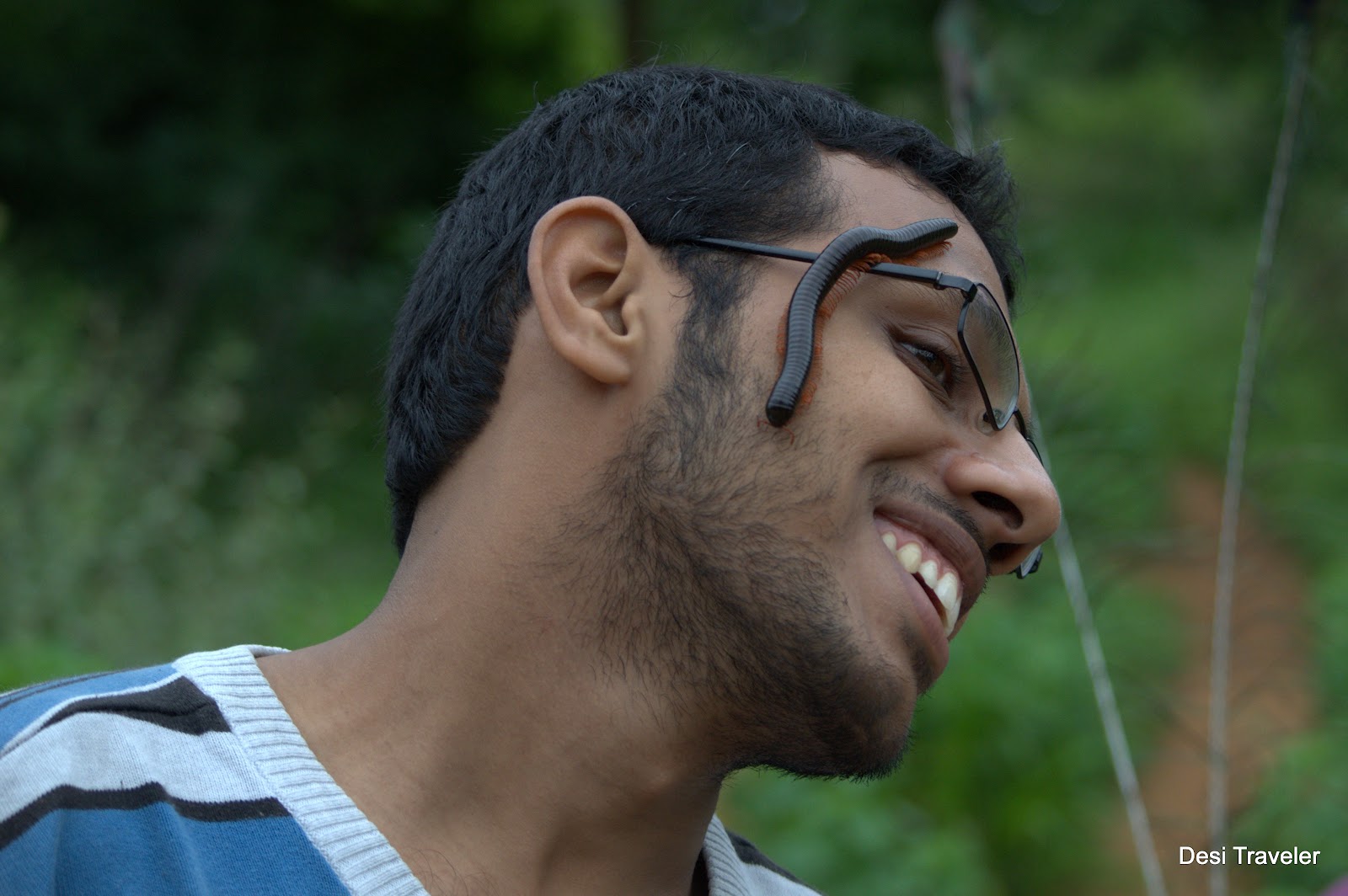 The highlight of the trip was a large millipede that we spotted and he decided to befriend Arun Vasireddy our group leader. The millipede blissfully played on his face and then crawled on the arms of one of the American student who was with the group. Though I would strictly recommend against picking wild creatures unless you know what you are picking as some of them can be quiet poisonous. I was also able to click some pictures of the elusive Sunbird at botanical garden.